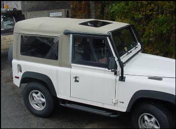 The Badger I GK (gutter kit) full canvas tops are available in 6 colors and are made with automotive fabric as used on more expensive European convertibles. The zippers are made from nylon and are the type used in the marine industry. The windows are double polished vinyl and come in a dark grey tint. The Badger I GK package uses the galvanized gutter, and 1 piece door seal kits to create a proper fit around the doors. This almost completely eliminates any chance for water leaks. If it was 100%, it wouldn't be a Land Rover. The 2 side windows and tailgate window zip out completely, and can be stored in a storage bag. Replacement windows are available if needed. There is an option for a sunroof and blank side windows.