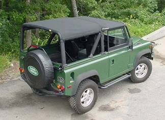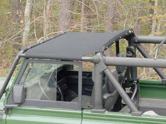3. Bring the sides of the bikini top over the outer rollbars, then back in and over the top of the horizontal bar (above each door) and seat the four snaps on each side.