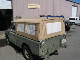 1) Full Canvas with windows $2395.00 2) Full Canvas without windows $2195.00 3) 3/4 Canvas with windows $1295.00 4) 3/4 Canvas with out windows $975.00 5) Bikini top $350.00 6) Half Cab canvas $995.00 Prices do not include frame or hardware Items needed for half cab: Secondary bow and spacer plate are genuine Land Rover parts and the prices are subject to change. Call for price quote.